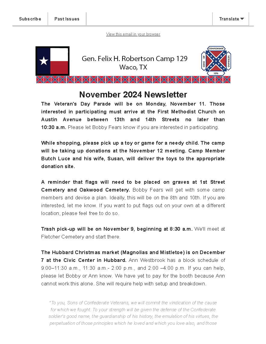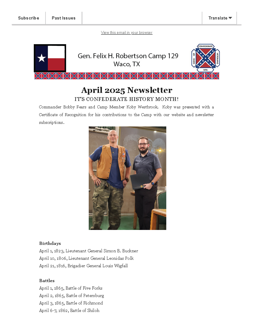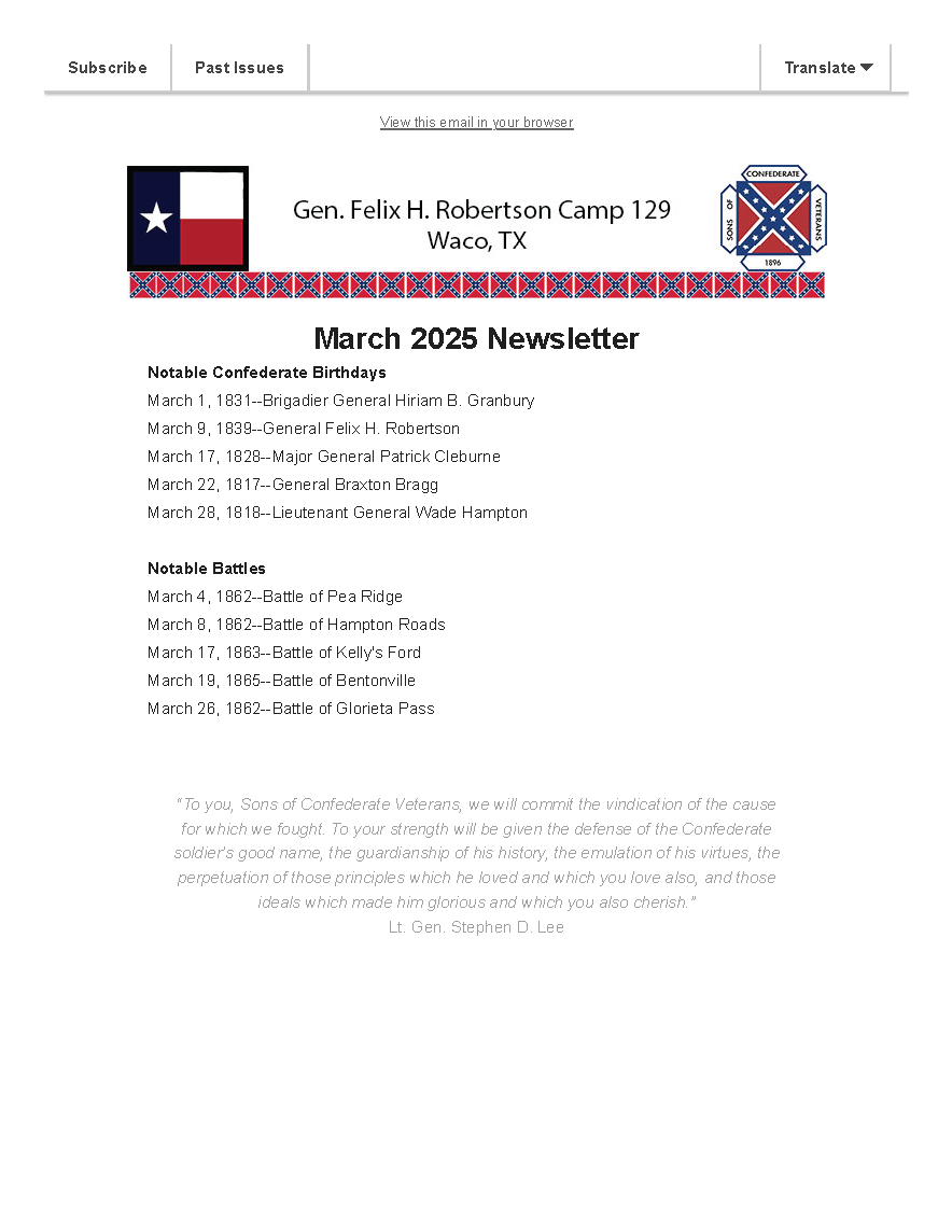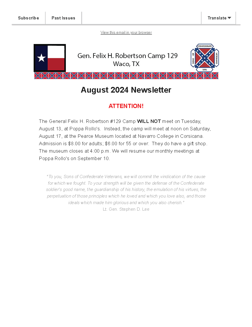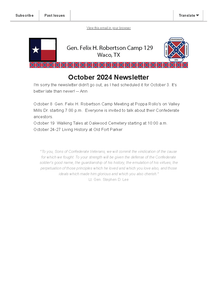 Camp Name: | General Felix H Robertson Camp |